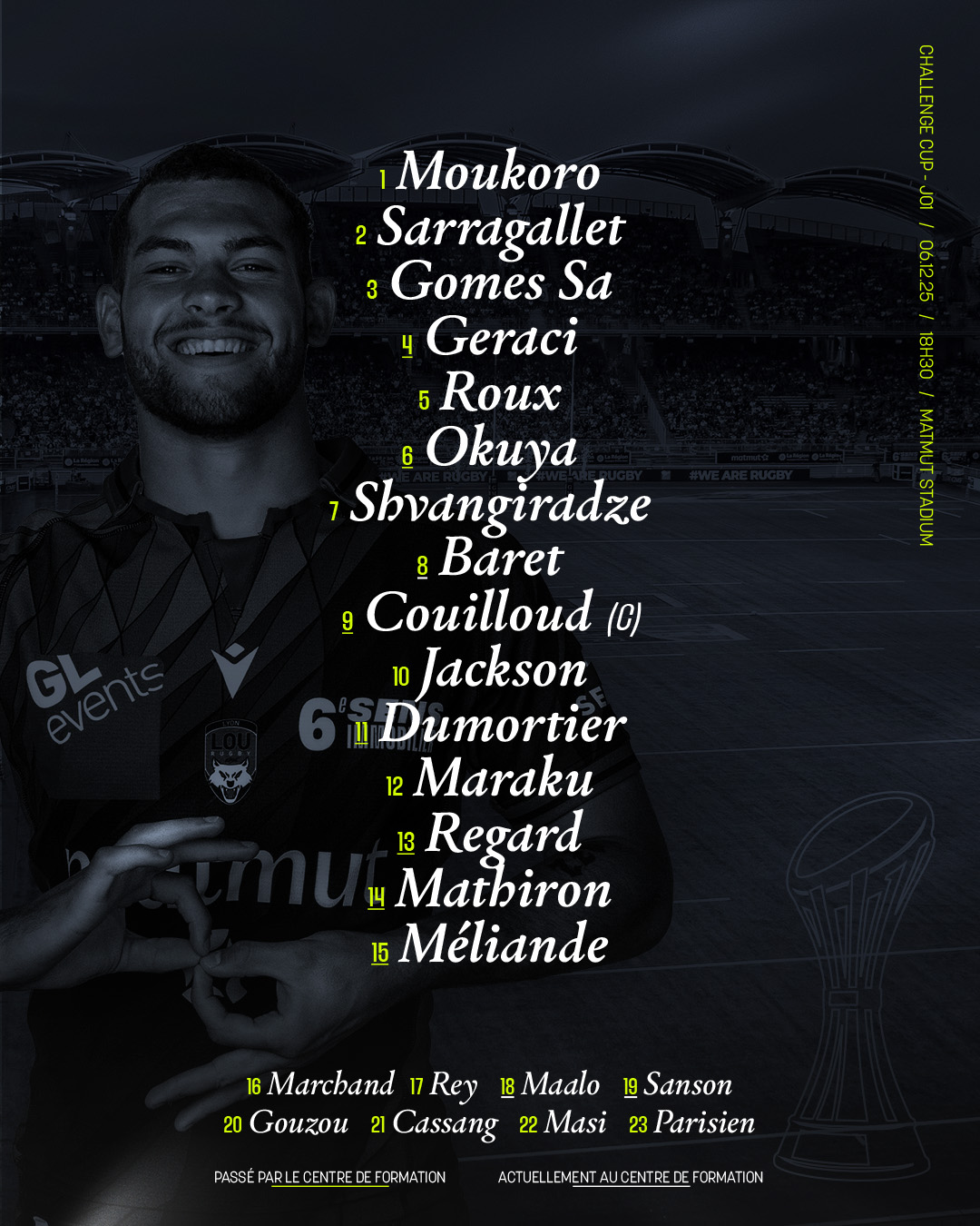 Découvrez les 23 joueurs qui défendront les couleurs du LOU, ce samedi 6 décembre au Matmut Stadium, face à Newcastle !