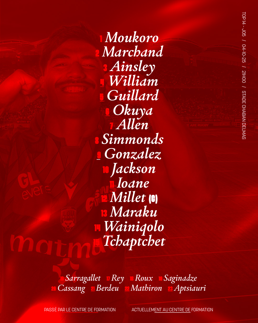 Pour cette 5ème journée de TOP 14, le LOU Rugby se déplace ce samedi (21h) sur la pelouse de l'Union Bordeaux-Bègles.
